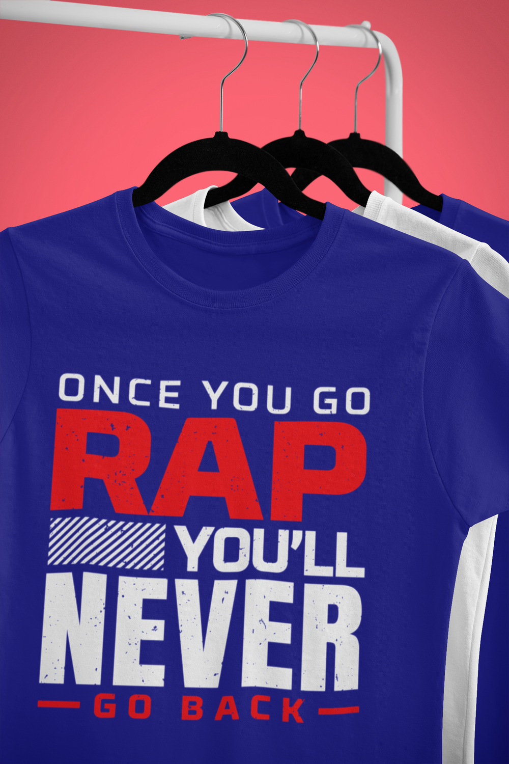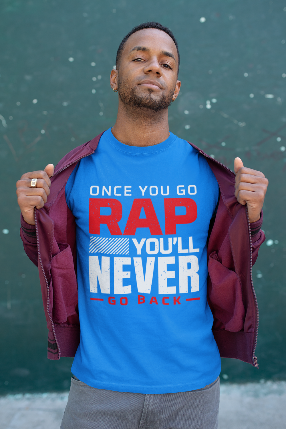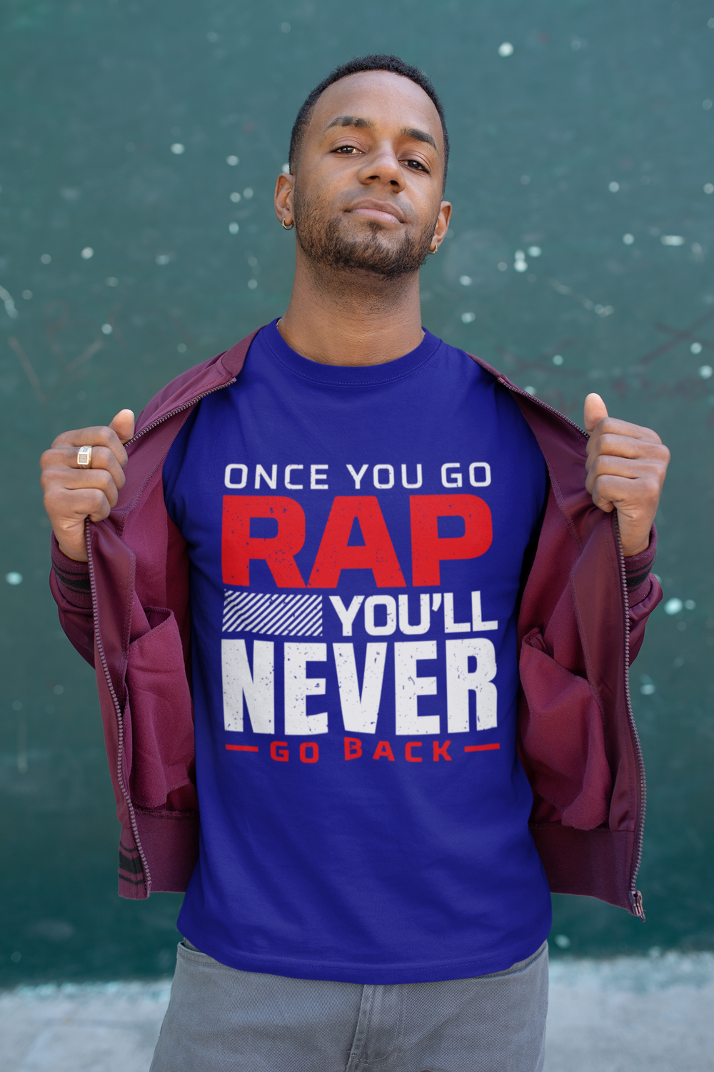 Presenting you an exclusive collection dedicated to 50 Years of hip hop culture featuring the quote, ONCE YOU GO RAP, YOU'LL NEVER GO BACK. Crafted from high-quality material, with a limited edition graphic print, this short sleeve t-shirt is available in five colors, is easy to care for, and provides a comfortable fit. Shipping is free within the USA and UK, so don't wait - get your t-shirt today! The perfect gift to a loved one or your well-deserving self. A must for the individual who likes to stand out from the crowd.