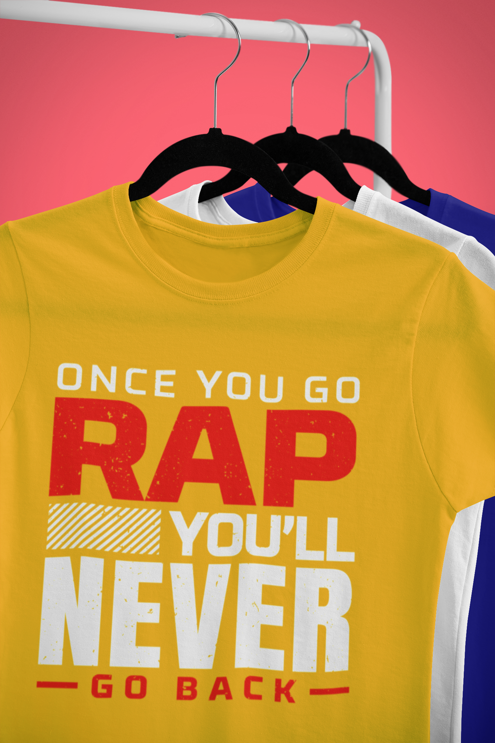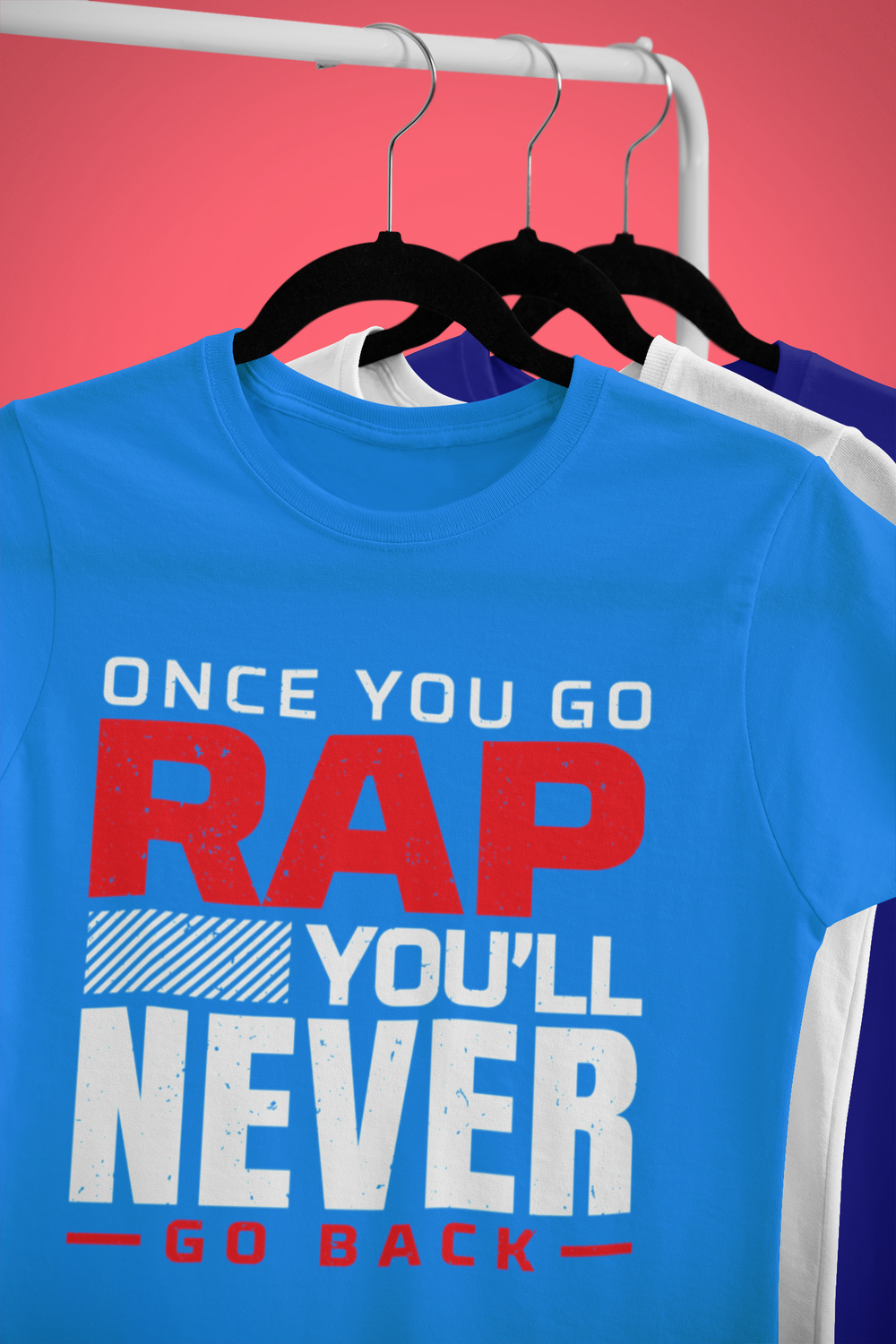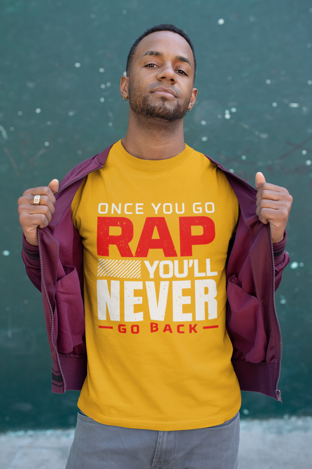 Presenting you an exclusive collection dedicated to 50 Years of hip hop culture featuring the quote, ONCE YOU GO RAP, YOU'LL NEVER GO BACK. Crafted from high-quality material, with a limited edition graphic print, this short sleeve t-shirt is available in five colors, is easy to care for, and provides a comfortable fit. Shipping is free within the USA and UK, so don't wait - get your t-shirt today! The perfect gift to a loved one or your well-deserving self. A must for the individual who likes to stand out from the crowd.