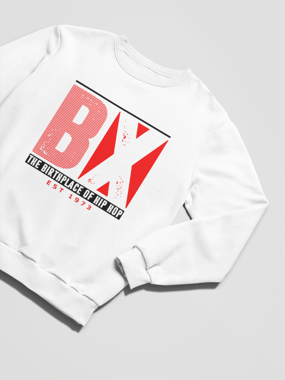 Presenting you with a fantastic piece of hip-hop-inspired apparel, featuring hip-hop icon, BX The Birthplace Of Hip Hop - Sweatshirt - 5 Colors. A slick, high-quality, regular-fit, sweatshirt, easily washable and designed for your absolute comfort. Always in fashion, this exceptional sweatshirt has proved to be a timeless classic and is the perfect solution on those "not know what to wear days. The heavyweight fabric makes this item a versatile must-own for every season — it's not too light for chilly days, and not too heavy for the warmer ones — it's just right. Available in five really cool colors, and made to give your outfit that really dope old-school hip-hop look.