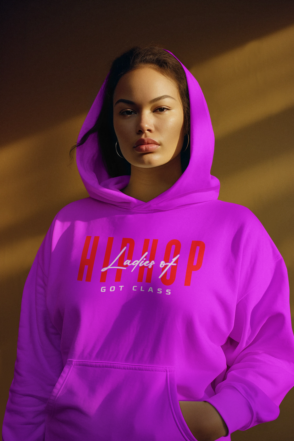 Presenting you with a fantastic piece of hip-hop-inspired apparel for all those who love to rep the culture, featuring quote, LADIES OF HIP HOP GOT CLASS. Bringing you a slick, high-quality Hoodie with a cutting edge hip hop print across the chest area. Made from a material that is easily washable and designed for your absolute comfort. King of versatility, this classic men's hooded sweatshirt is a must for your wardrobe. The kangaroo-style front pocket is perfect for your phone, keys, or anything else you want to stash. Available in 5 colors and made to give your outfit that really dope, old-school hip hop look you're looking for.