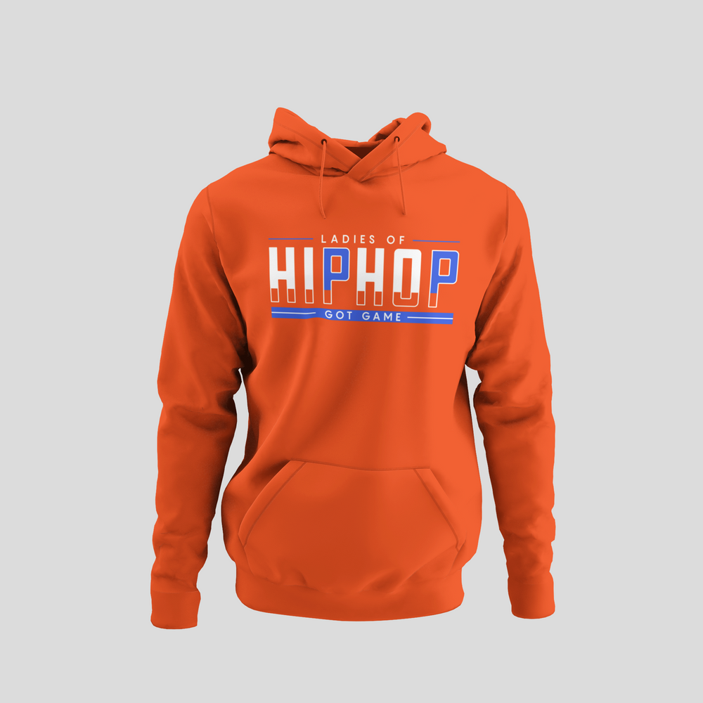 Presenting you with a fantastic piece of hip-hop-inspired apparel for all those who love to rep the culture, featuring quote, LADIES OF HIP HOP GOT GAME. Bringing you a slick, high-quality Hoodie with a cutting edge hip hop print across the chest area. Made from a material that is easily washable and designed for your absolute comfort. King of versatility, this classic men's hooded sweatshirt is a must for your wardrobe. The kangaroo-style front pocket is perfect for your phone, keys, or anything else you want to stash. Available in 5 colors and made to give your outfit that really dope, old-school hip hop look you're looking for.